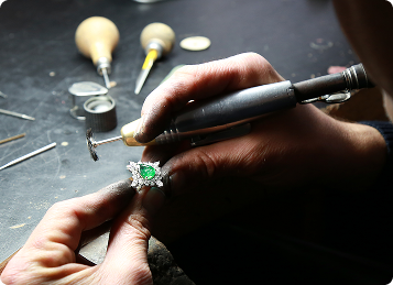 The Crafting Process: It begins with the delicate work of designing, then shaping, and refining each detail. Using quality gemstones and materials, every piece is carefully inspected and crafted by our master jeweler to reflect your story and our tradition of excellence.