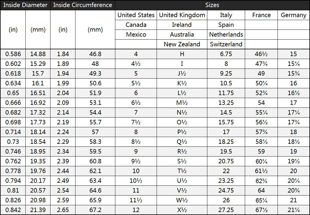 | Ring Sizing | 3, 3.25, 3.5, 3.75, 4, 4.25, 4.5, 4.75, 5, 5.25, 5.5, 5.75, 6, 6.25, 6.5, 6.75, 7, 7.25, 7.5, 7.75, 8, 8.25, 8.5, 8.75, 9, 9.25, 9.5, 9.75, 10, Others |